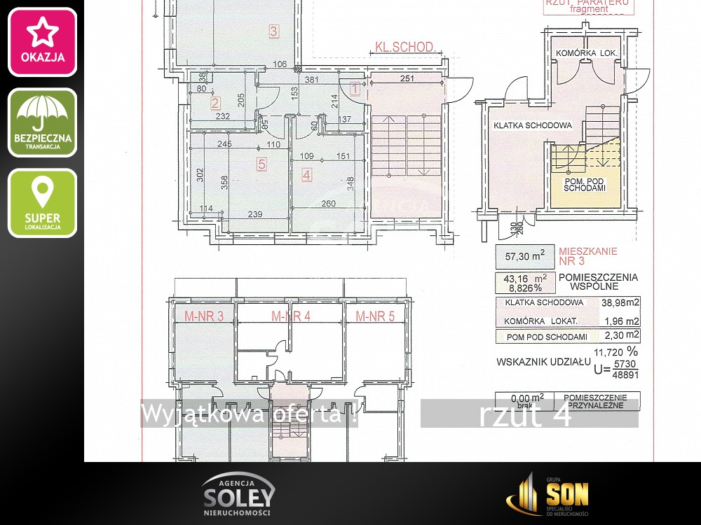 - 2 komórki lokatorskie (ok. 1 m² każda) możliwość zakupienia dowolna,