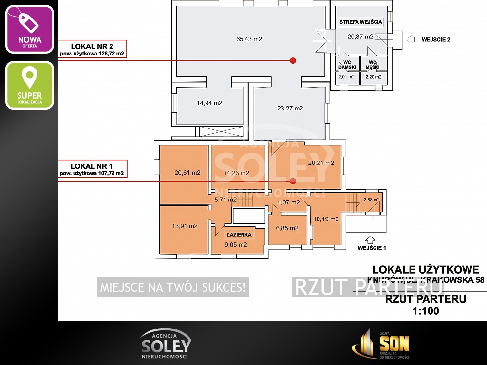 DWA LOKALE UŻYTKOWE O ŁĄCZNEJ POWIERZCHNI 236 M2.