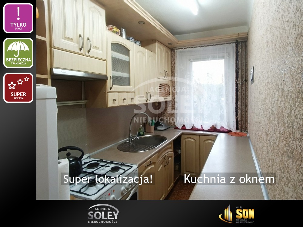 - Kuchnia odrębna, z oknem, z meblami oraz częściowym sprzętem AGD.